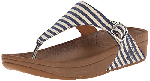 A gorgeous summer sandal about to FitFlop their way into your suitcase. An easy, weightless sandal eager to appear on your holiday beaches. This FitFlop enables you to walk that extra mile, with the thick wedged sole it accommodates. A choice of leather or striped textile upper, Leather lining, Toe-thong with adjustable square buckle, Built-in arch contour